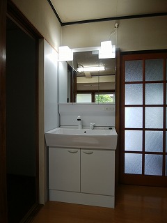 【新しく新設された洗面台】→