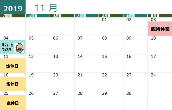 ・リフォームフェスタ開催日:11月4日(祝・月)