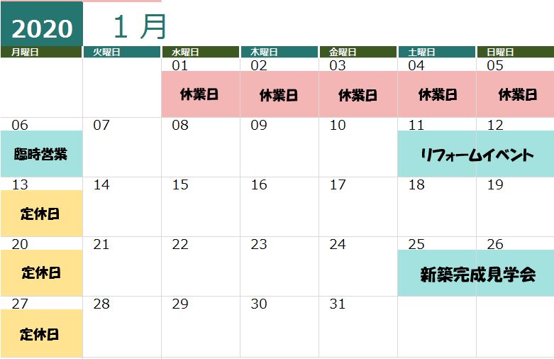 ↓2019年12月・2020年1月の浜北ショールーム営業カレンダーはこちらです↓