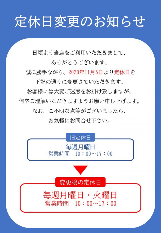 定休日変更のお知らせ