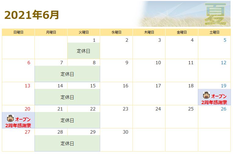 6/19(土)20(日)に「オープン2周年感謝祭」を予定しております。