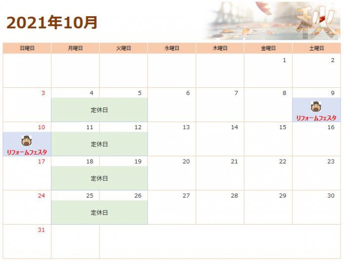 [浜松市] 【浜北ショールーム 10月営業カレンダー】