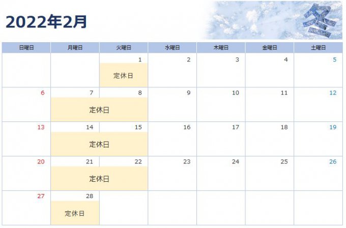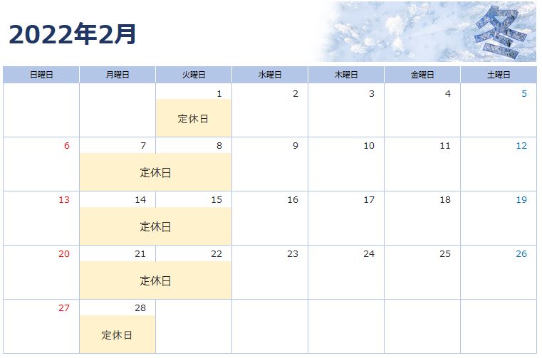 [浜松市] 【浜北ショールーム 2月営業カレンダー】