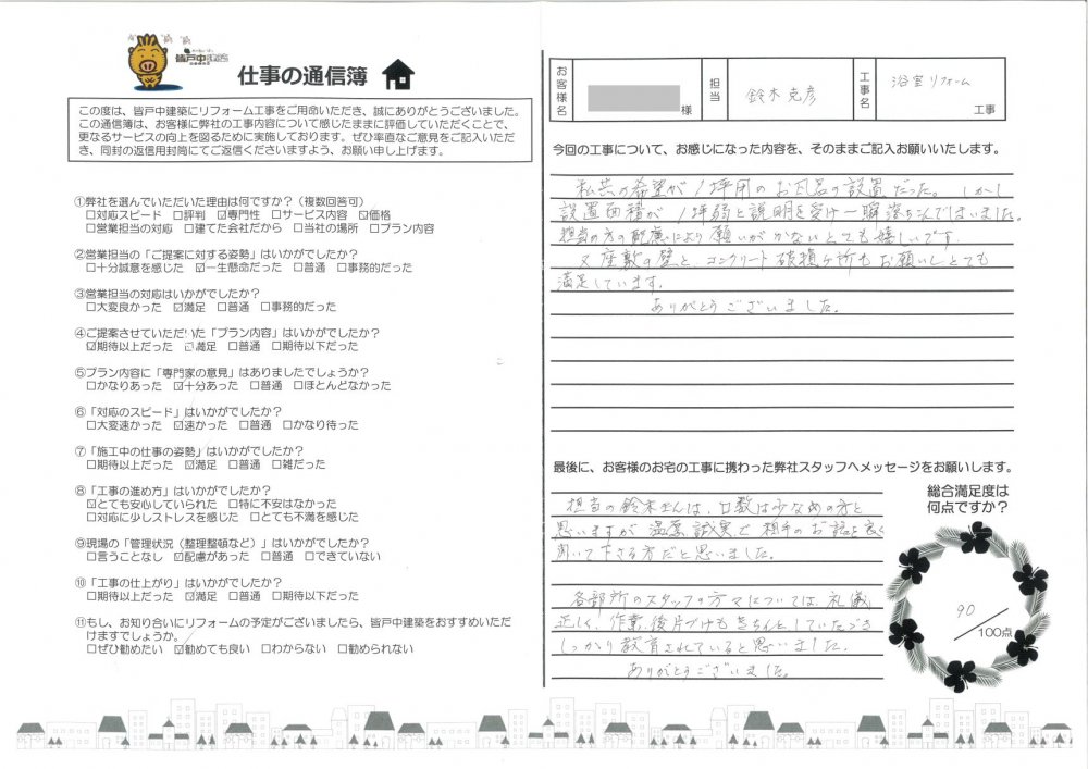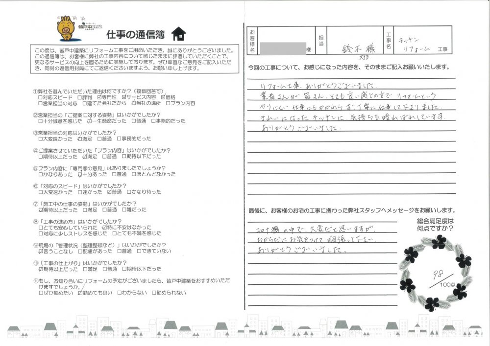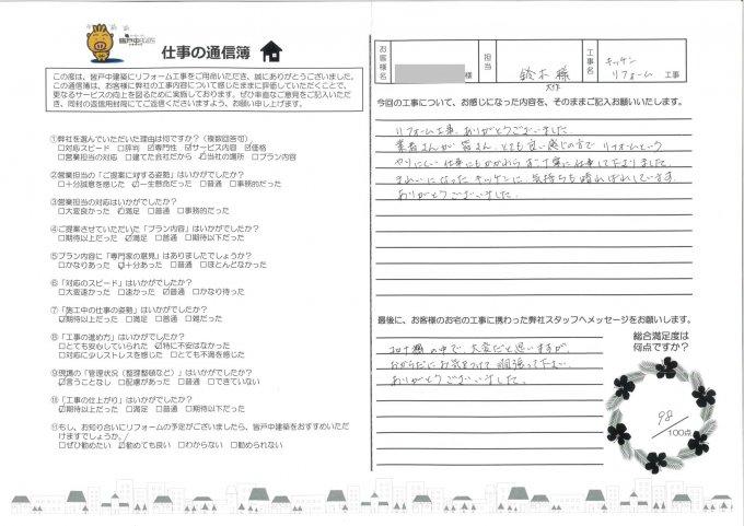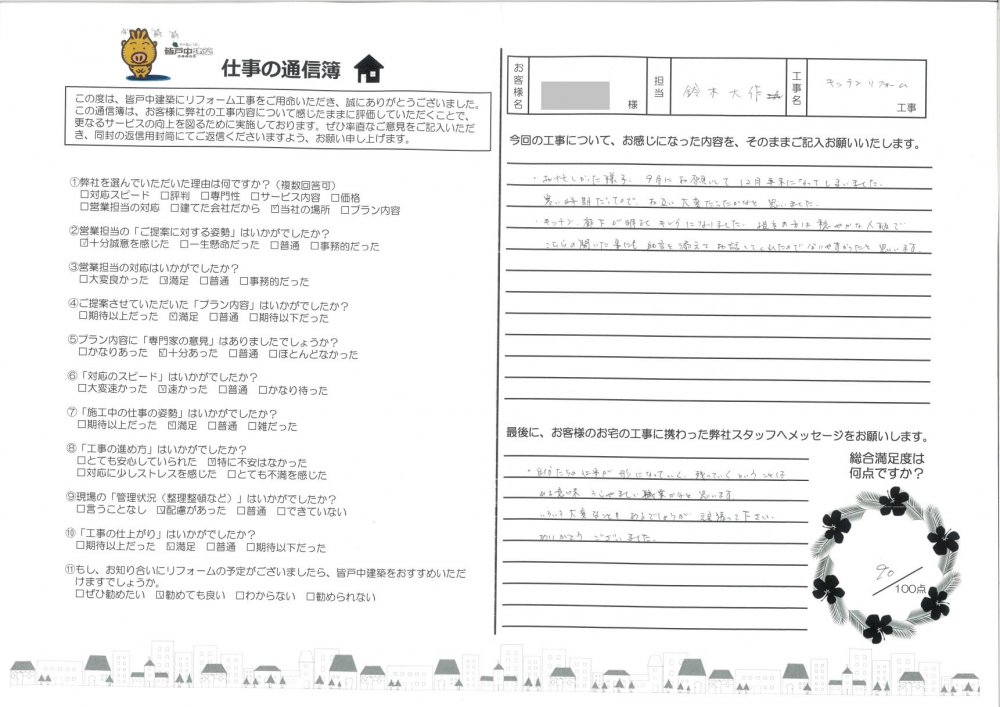 皆戸中建築で住宅リフォームをして頂いたお客様からの