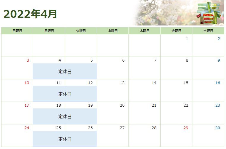 4月の営業カレンダーはこちら↓