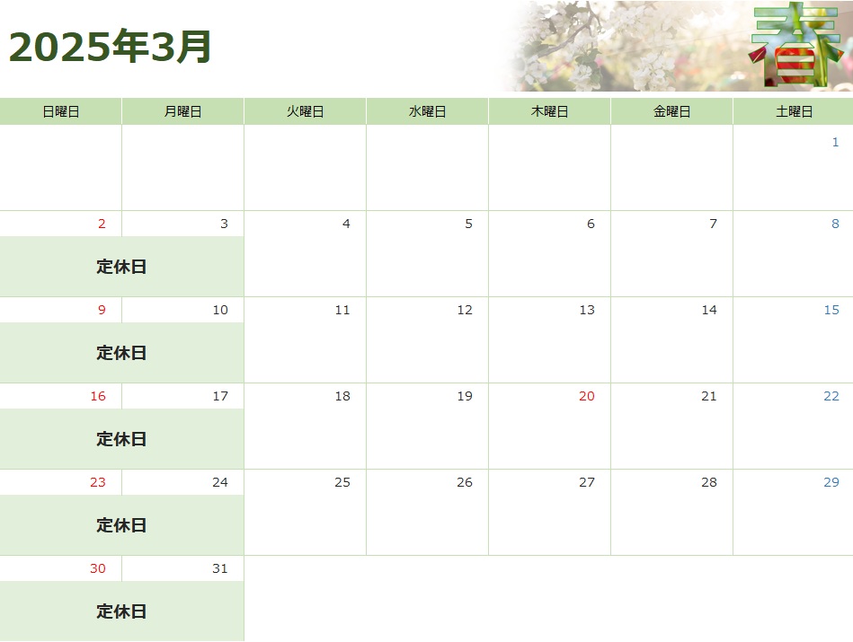 ●3月の営業カレンダー●はこちら↓