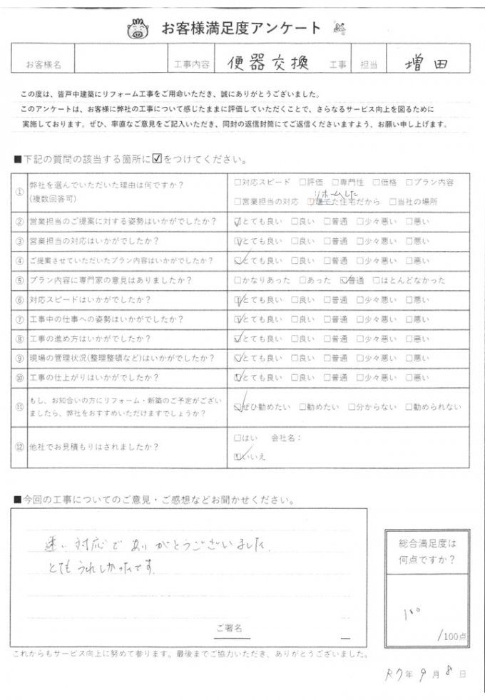 皆戸中建築で各種リフォームをして頂いたお客様からの