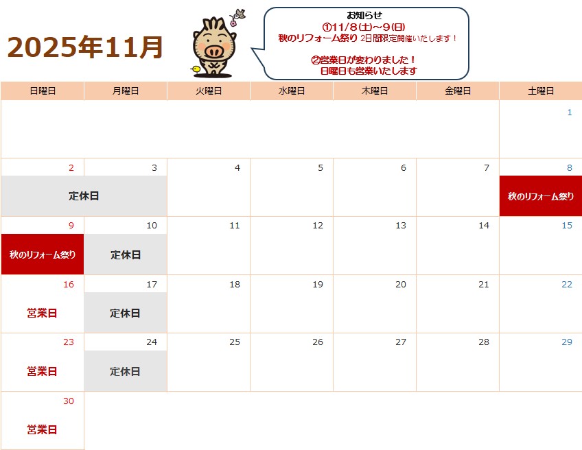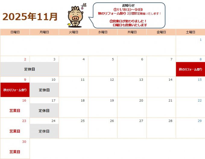 ●11月の営業カレンダー●はこちら↓
