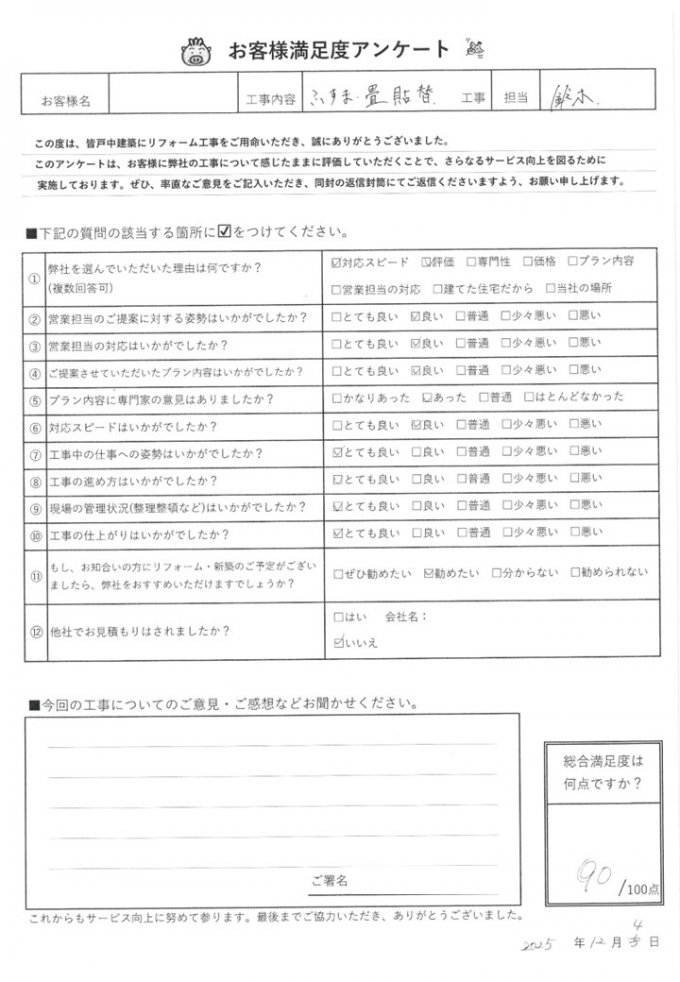 皆戸中建築で各種リフォームをして頂いたお客様からの